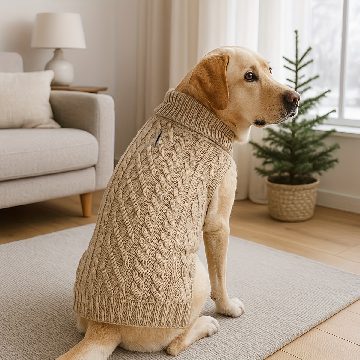 TEMU 강아지 터틀넥 케이블 니트 스웨터, 추운 날씨용 클래식 패턴 애완동물 스웨터, 카키