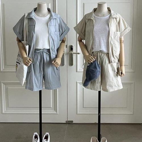 [옷자락]여자 SS 주머니 나일론 외투 반소매 집업 쿨 점퍼