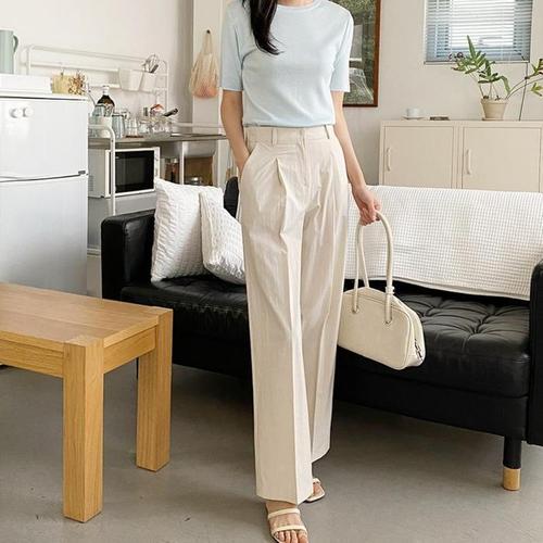 [다잇템]여자 바스락 편한 쿨 SS 핀턱 정장바지 팬츠 (15607192A)