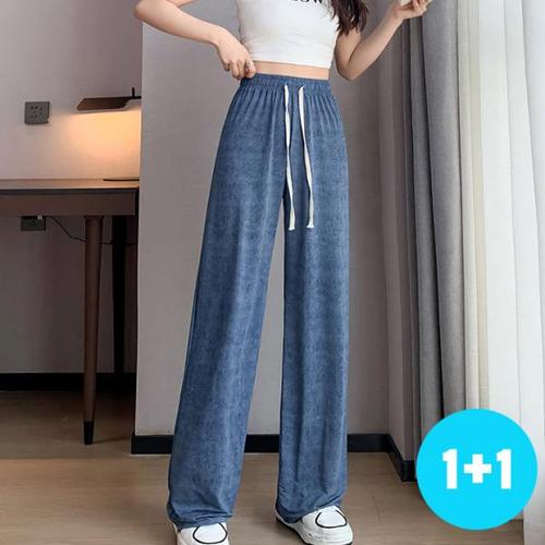 [이삐다]1+1세트 여성 여름 아이스쿨 패턴 와이드팬츠 Bon-2465