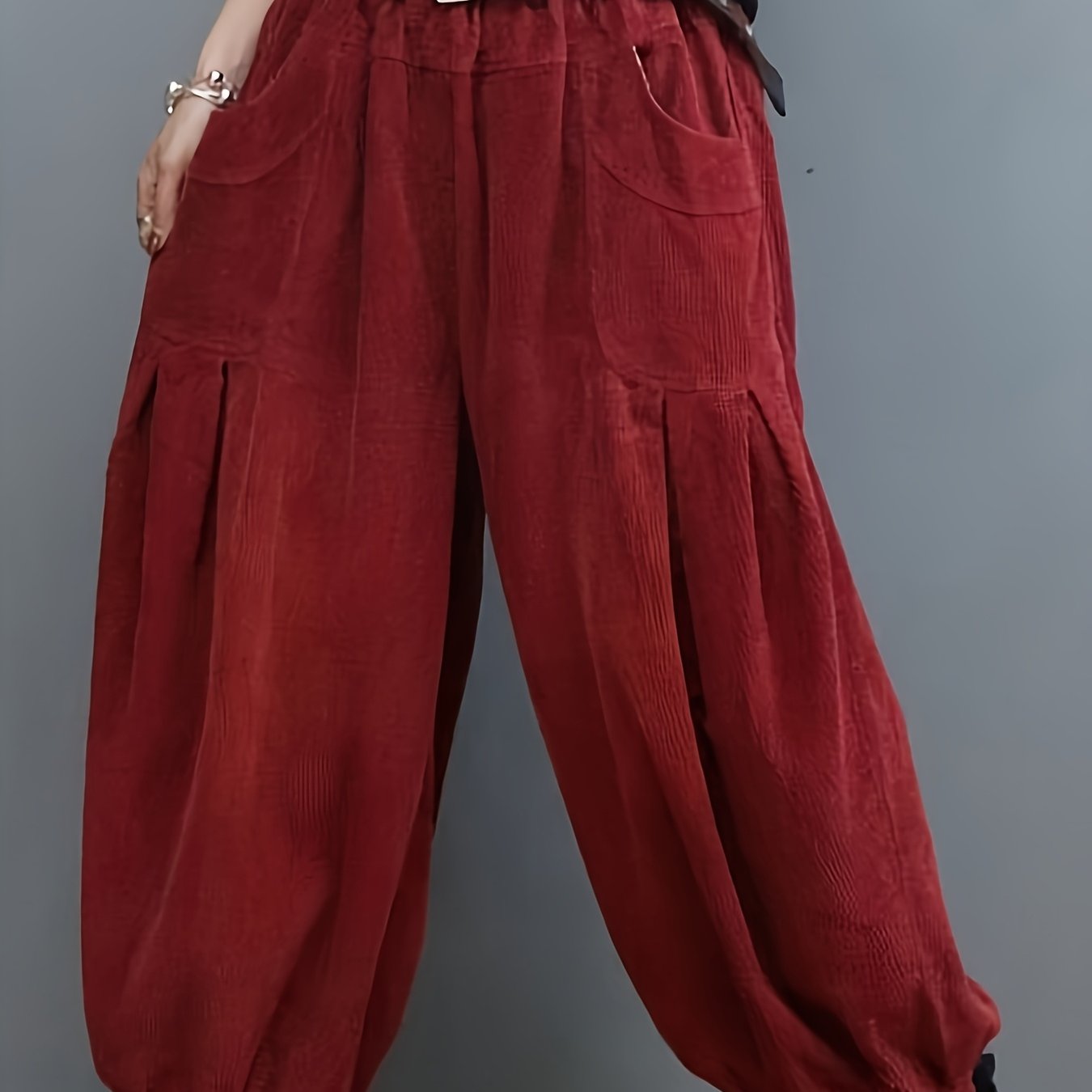 TEMU 여성 빈티지 코듀로이 와이드 레그 팬츠 - 탄성 허리 밴드, 두꺼운 안감 디자인, 캐주얼 및 포멀 웨어 모두에 적합 - 가을/겨울용 세탁기 사용 가능한 단색 바지 - 성인 여성 의류, 캐주얼 팬츠, 편안한 복장|빈티지