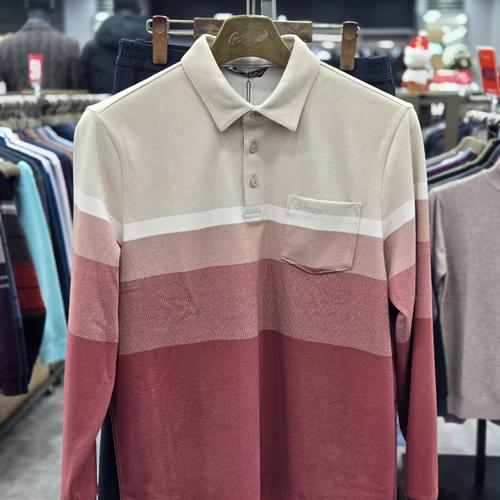 [크로커다일남성]코트나기모선염패턴스트라이프티셔츠CDAABT S445238_IC
