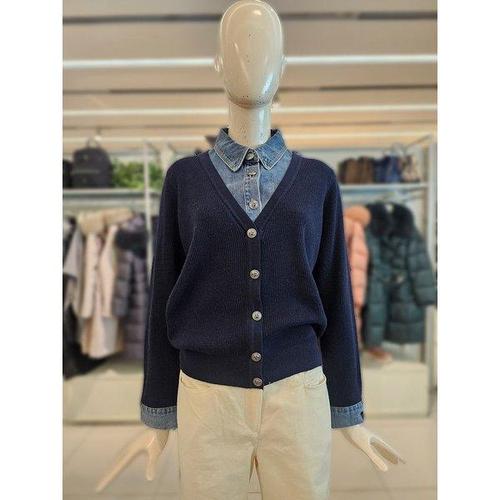 갤러리아_크로커다일레이디 데님 배색 카라 니트 가디건 CLEWSW120