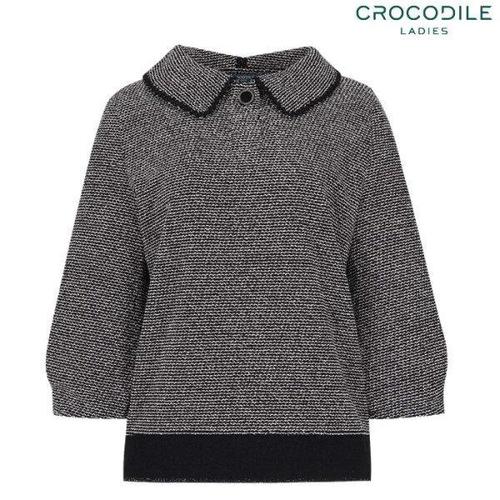[크로커다일레이디](CLDFTS109) 트위드 느낌의 져지 변형 카라 티셔츠_GN