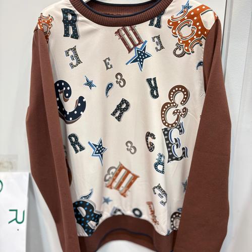 [크로커다일레이디]앞판 프린트 배색 긴팔 티셔츠 브라운