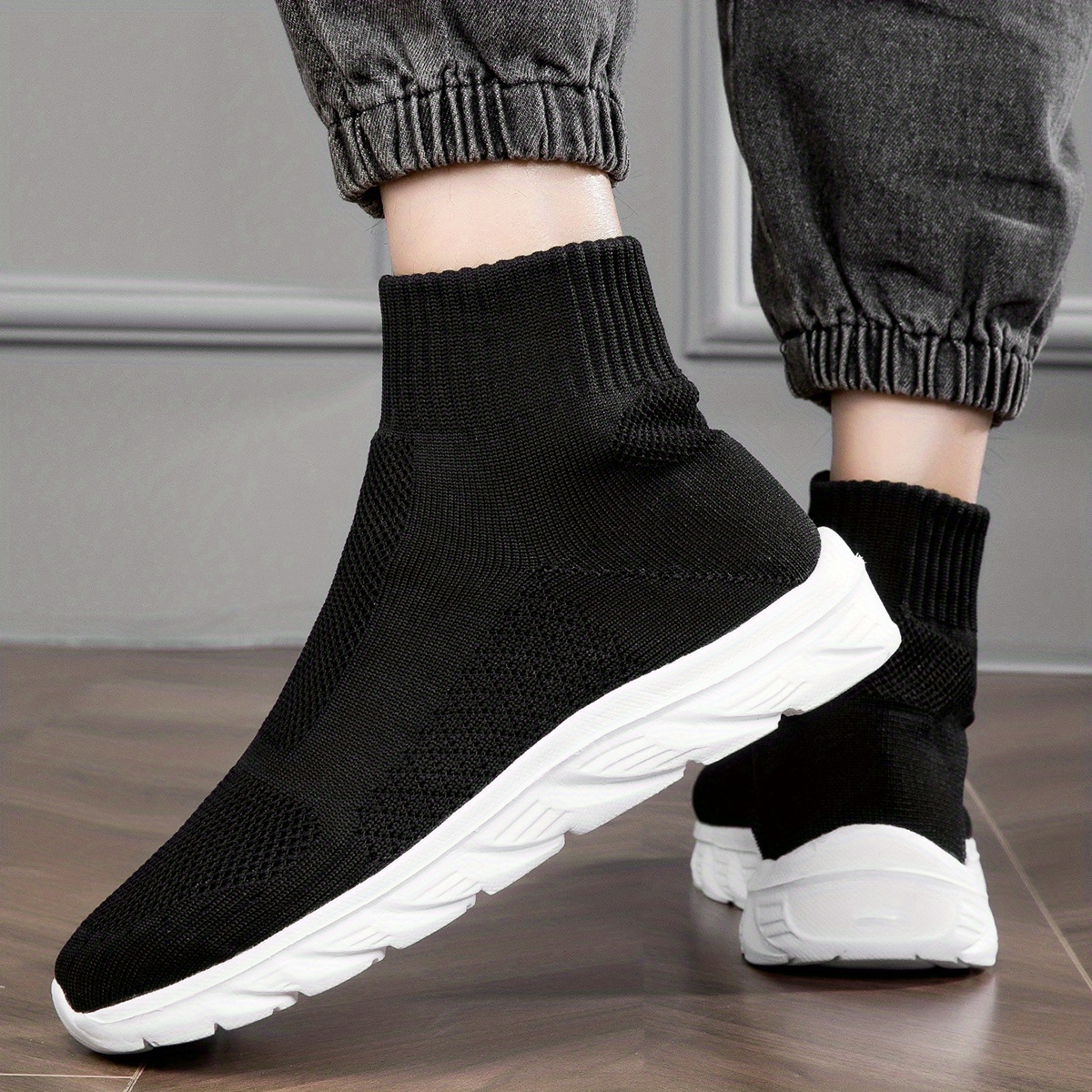 TEMU 남성 트렌디 슬립 온 양말 신발, 운동용 하이 탑 통기성 짠 니트 경량 스니커즈 운동화 신발