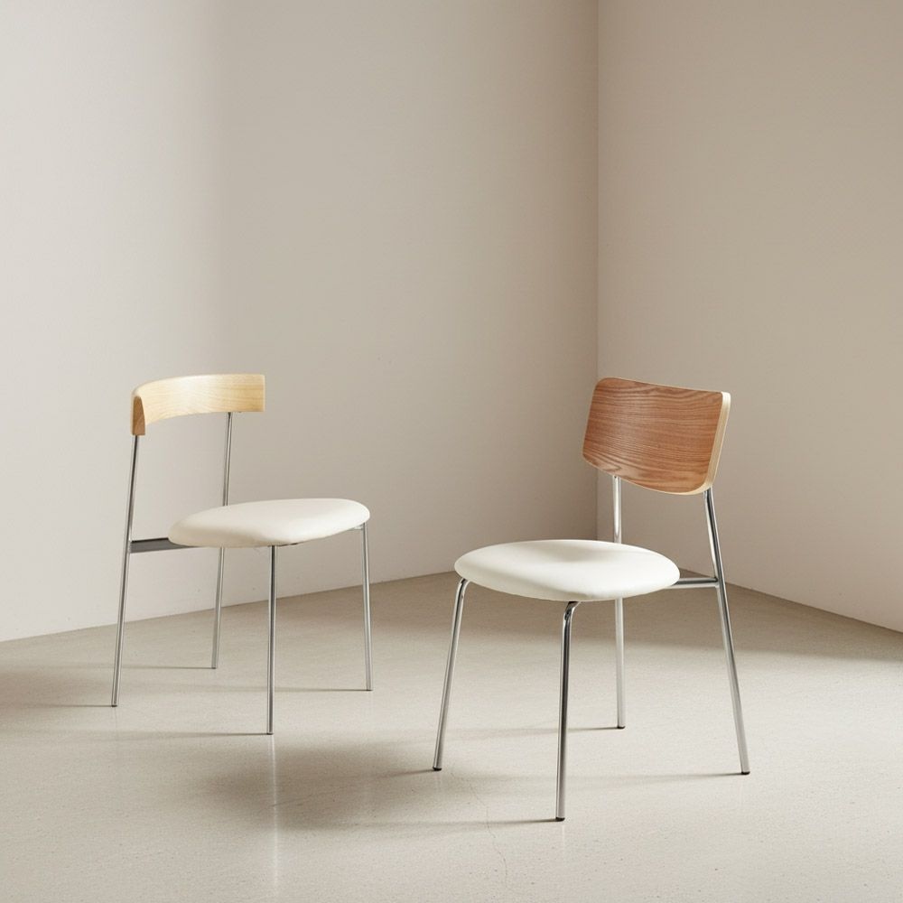 [1+1] 르노 체어 원목 크롬 식탁의자 모던 미드센츄리 인테리어 디자인 의자
