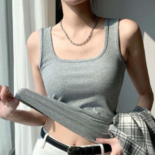 [옷자락] 여성 슬림 면스판 크롭캡 나시 단가라 내장