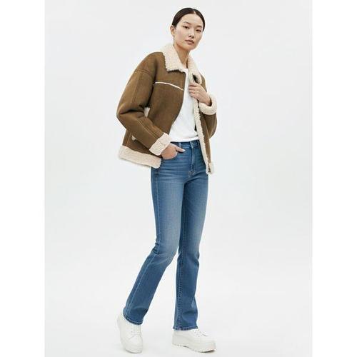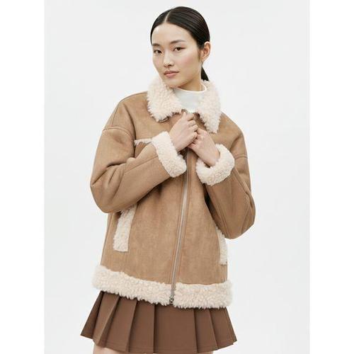 여성 크롭 무스탕 자켓 양털 안감 스웨이드 겨울 덤블 아우터 WFL0Q8X