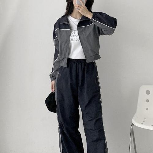 [에이치플러스몰]여성 간절기 자켓 크롭기장 얇은 바람막이 배색 점퍼