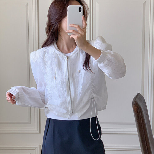 [옷자락]여자 셔링 스트링 크롭 집업 바람막이 후드집업 점퍼