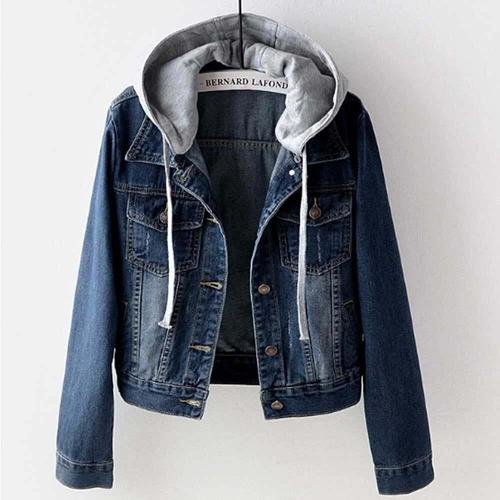 여성 2컬러 슬림핏 크롭 탈부착 후드 청 데님자켓 (HSJ-WFFL6QG)