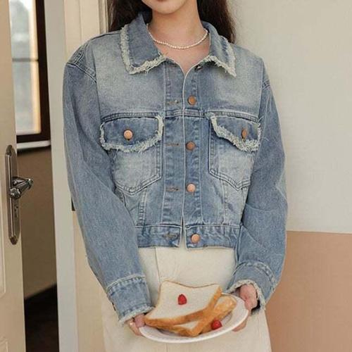 여성 빈티지 무드 헤짐 디테일 크롭 데님자켓 청자켓 (HSJ-WFG4DI1)