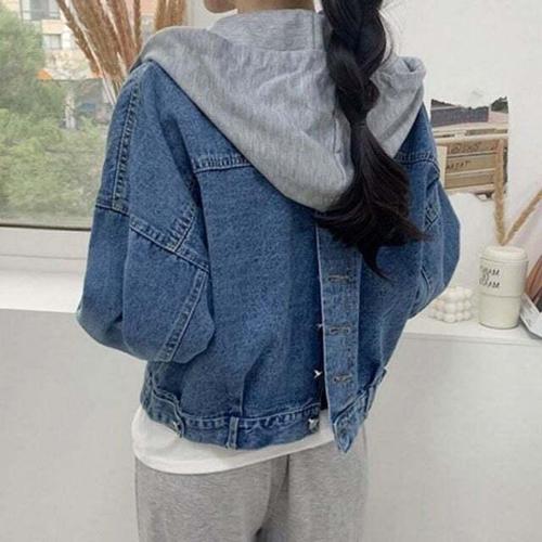 [셀럽하우스]후드 MSAI5437 배색 탈부착 데님 청자켓 데일리 자켓 크롭기장