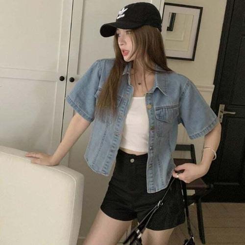 반팜 재킷 여성 숏 청자켓 데님 여름 반팔 크롭 데님