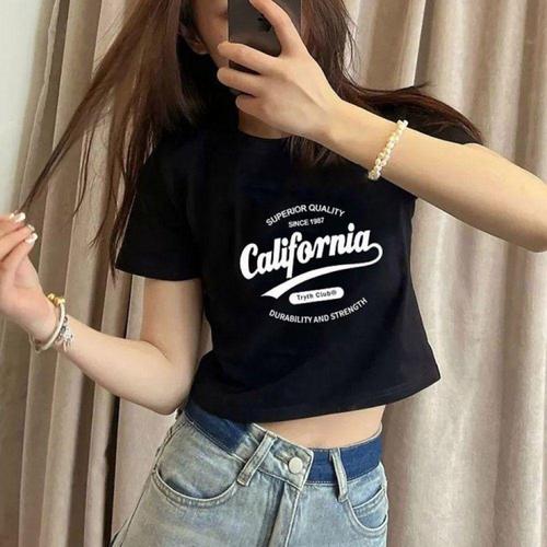 [오너클랜]인기상품 여성용 영문 프린팅 크롭 반팔 티셔츠 짧은 반팔티 크롭탑 [WFLLQTU_260305]