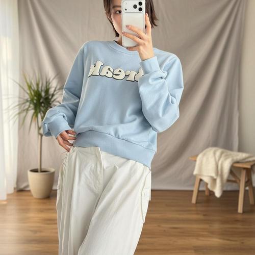 [핑크시슬리] 블루밍 발포 쭈리 세미크롭 박스 맨투맨