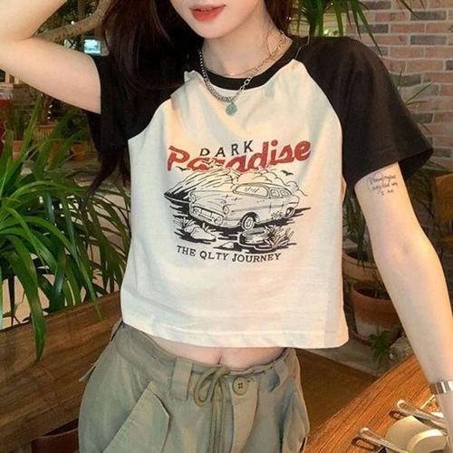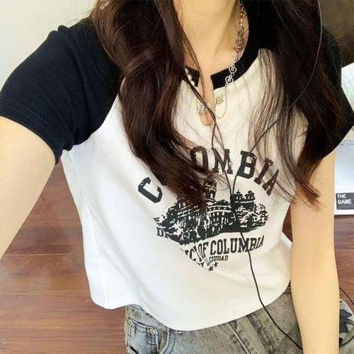 반팔티셔츠 배색 크롭티셔츠 여성캐주얼티 하이틴 WFKPDKV