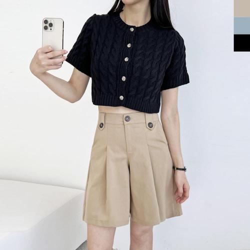 [센트럴몰]꽈배기 반팔 크롭 여성 니트가디건