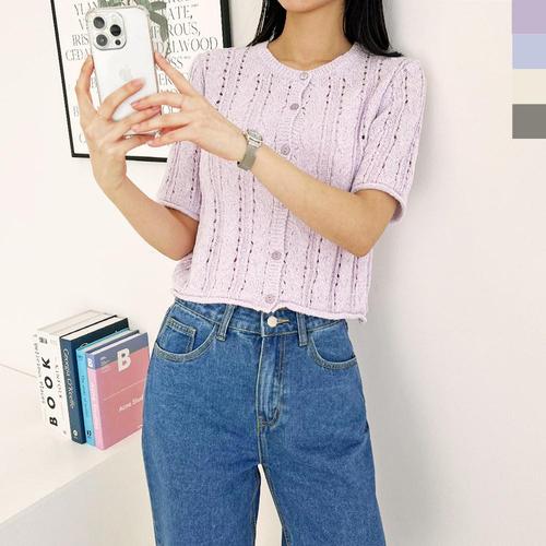 반팔가디건 펀칭 크롭 베이직 가디건