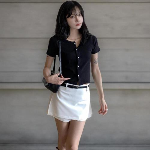 [에이치플러스몰]크롭 라운드넥 캐주얼 반팔 가디건 필수템