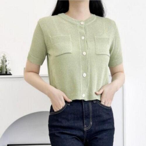 [에이치플러스몰]여름 여성 데일리 크롭 반팔 클래식 가디건 블라우스