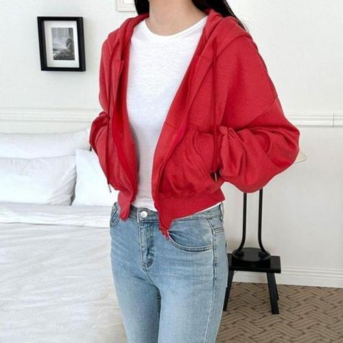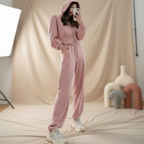 [옷자락]여성 데일리 루즈핏 크롭 후드 트레이닝 세트 벌룬소매 와이드 집업