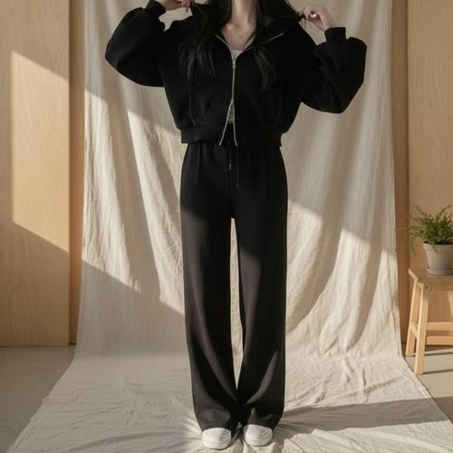 여성 크롭 후드 집업 조거 와이드 트레이닝 팬츠 셋업