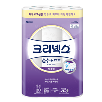 크리넥스 순수 소프트 3겹(98mmX30m) 30롤 X 3개