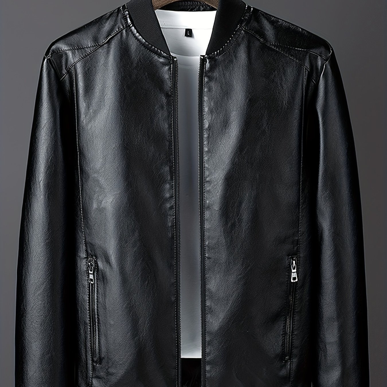 TEMU 남성 패션 자켓, 방풍 스탠드 칼라 플라이트 자켓, 지퍼 포켓, 스포츠 PU 가죽 코트, 내구성 PU 가죽 자켓, 기능성 스포츠 아우터웨어