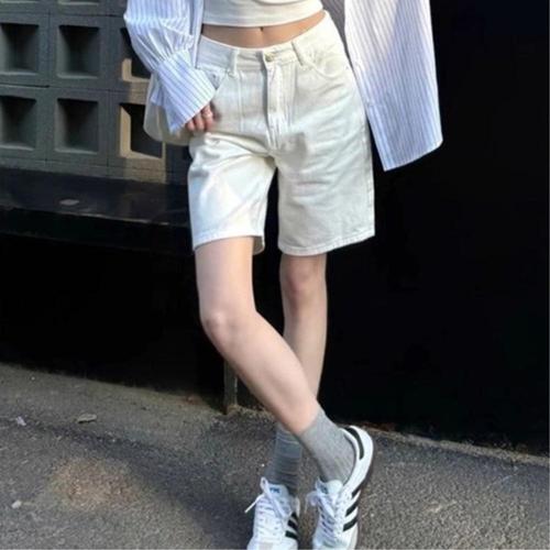 [다잇템]여성 데님 베이직 크림색 면원단 탄탄 반바지