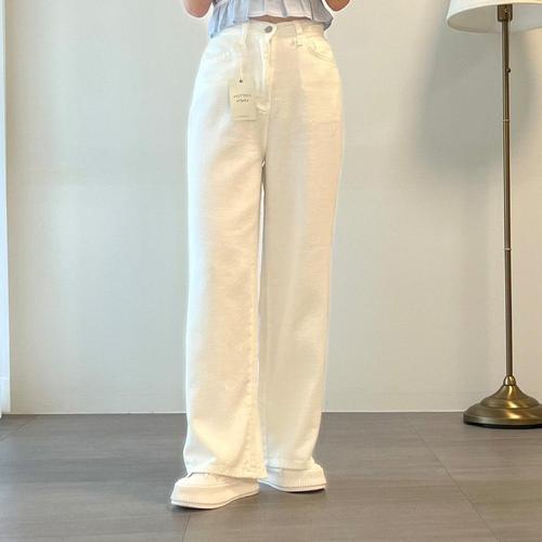 여자 크림색 SS 백밴딩 넓은 면원단 H라인 바지