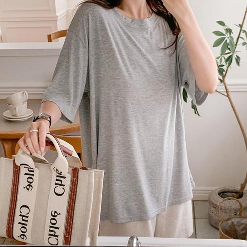 [다잇템]여자 큰사이즈 트임 기본반팔 티셔츠 (16189175A)