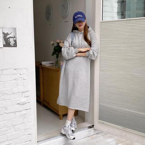 [다잇템]여자 기모 빅사이즈 큰옷 임부복 후드 롱원피스