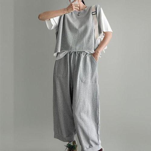 [다잇템]여성 큰주머니 의상 바지 슬리브리스 댄스 세트