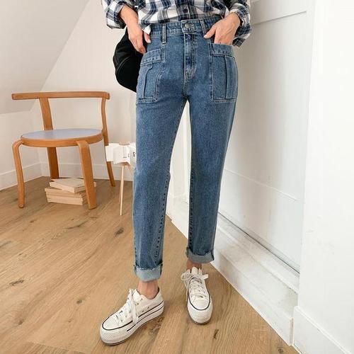[다잇템]여자 키큰녀 봄여름 큰주머니 고무줄 청바지