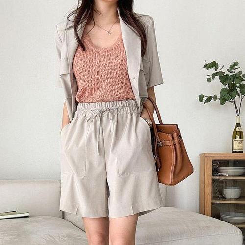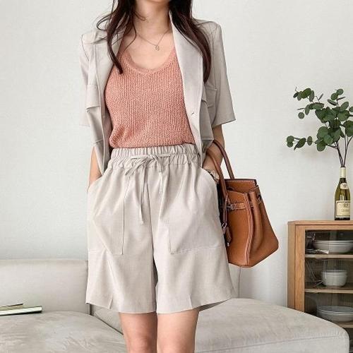 [다잇템][다잇템] 여자 4부 SS 큰주머니 와이드핏 끈밴딩 미니멀리즘 반바지_17069388_588872