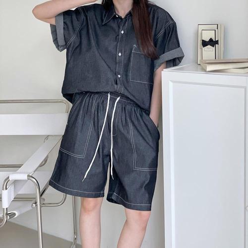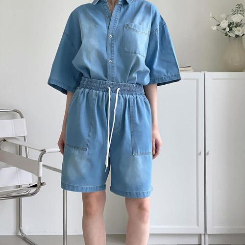 [다잇템]여자 큰주머니 하프 SS 캠퍼스룩 워싱 청반바지