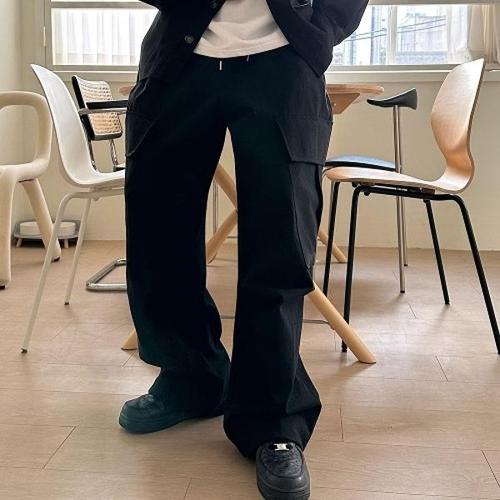 SMOPIG 남자 와이드 팬츠 순면으로 만든 두툼하다 춘추 캐주얼 바지 내마모성카고바지 널찍하다 드리움