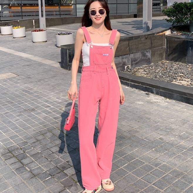 고품질 보이 점프슈트 다솜결 보이핏 점프수트 청멜빵바지 멜빵대님 여자청멜빵바지 (WFHOFUT)