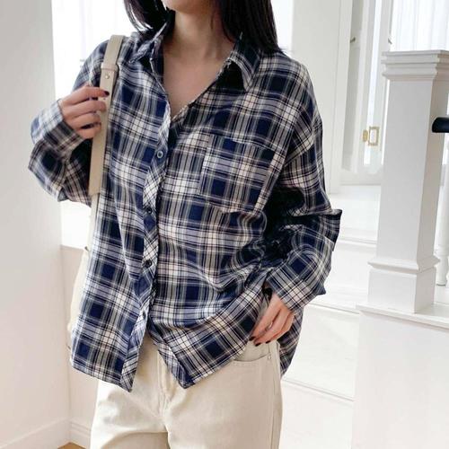 [다잇템]여자 격자 면원단 박시핏 클래식 빅사이즈 셔츠