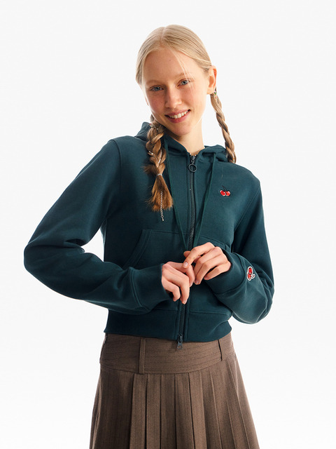 [키르시] 스몰 체리 크롭 후드 집업 [다크 그린]