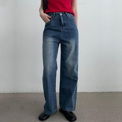 멀리온 라인 와이드핏 중청 데님팬츠 키작녀 청바지 WF378A5