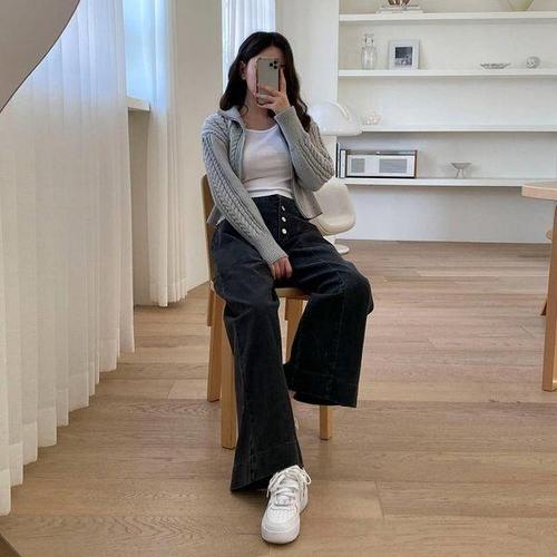 가비진 여성용 데님 일자 하이웨스트 투버튼 팬츠 키작녀 청바지 빅사이즈까지