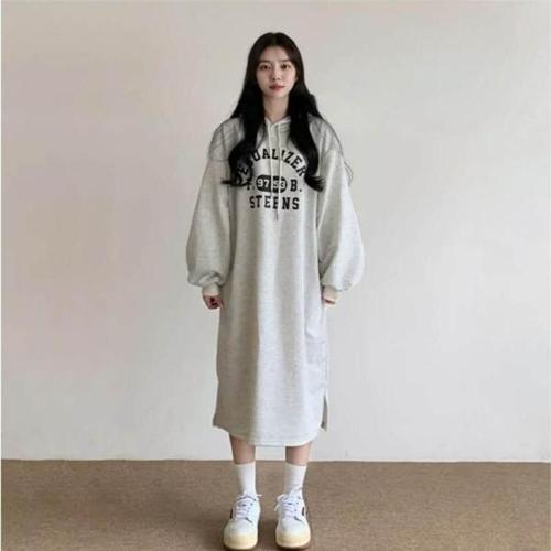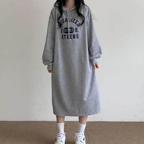 [셀럽하우스]영어 YYED9035 로고 포인트 오버핏 긴팔 후드 원피스