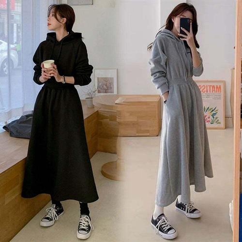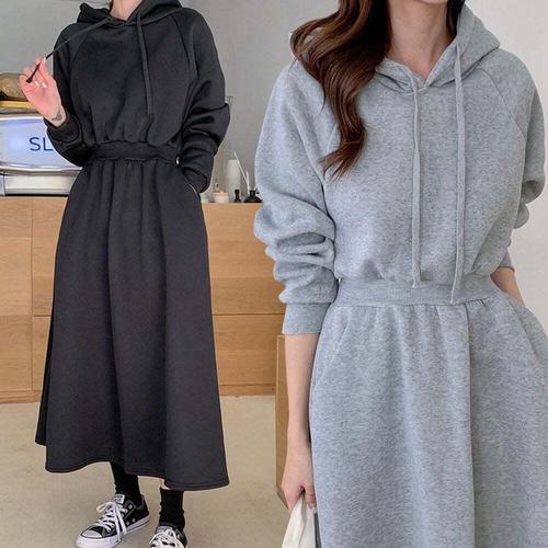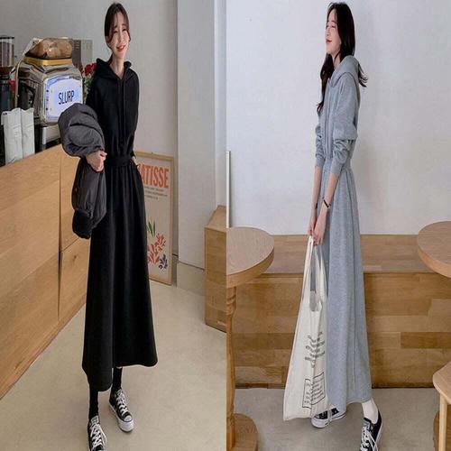 [셀럽하우스]편안한 YKBN5387 캐주얼 허리 밴딩 후드 롱 치마 캐쥬얼 원피스