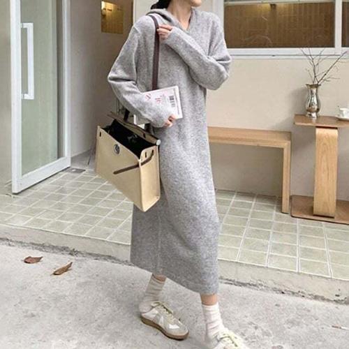 [셀럽하우스]캐쥬얼 GORO7506 은창)후드 캐주얼 베이직 니트 필수템 원피스