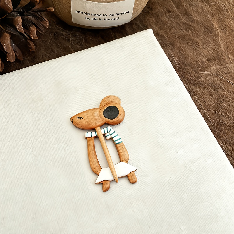 TEMU 발렌타인데이 특별, 커플 액세서리, 작은 쥐 모양의 순수한 나무 스카프 클립, 가을 및 겨울 스웨터 및 스카프에 적합, 스카프 고정 클립. 남자친구와 여자친구를 위한 창의적인 선물.