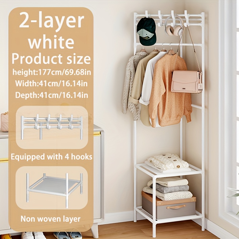 TEMU 흰색/검은색 메탈 코트 랙 (후크 포함) - 침실 및 거실에 적합한 일체형 신발 및 모자 랙, 블랙 및 화이트 색상으로 제공, 독립형 디자인, 재킷, 모자 및 액세서리에 적합, 코너 장식으로 사용 가능