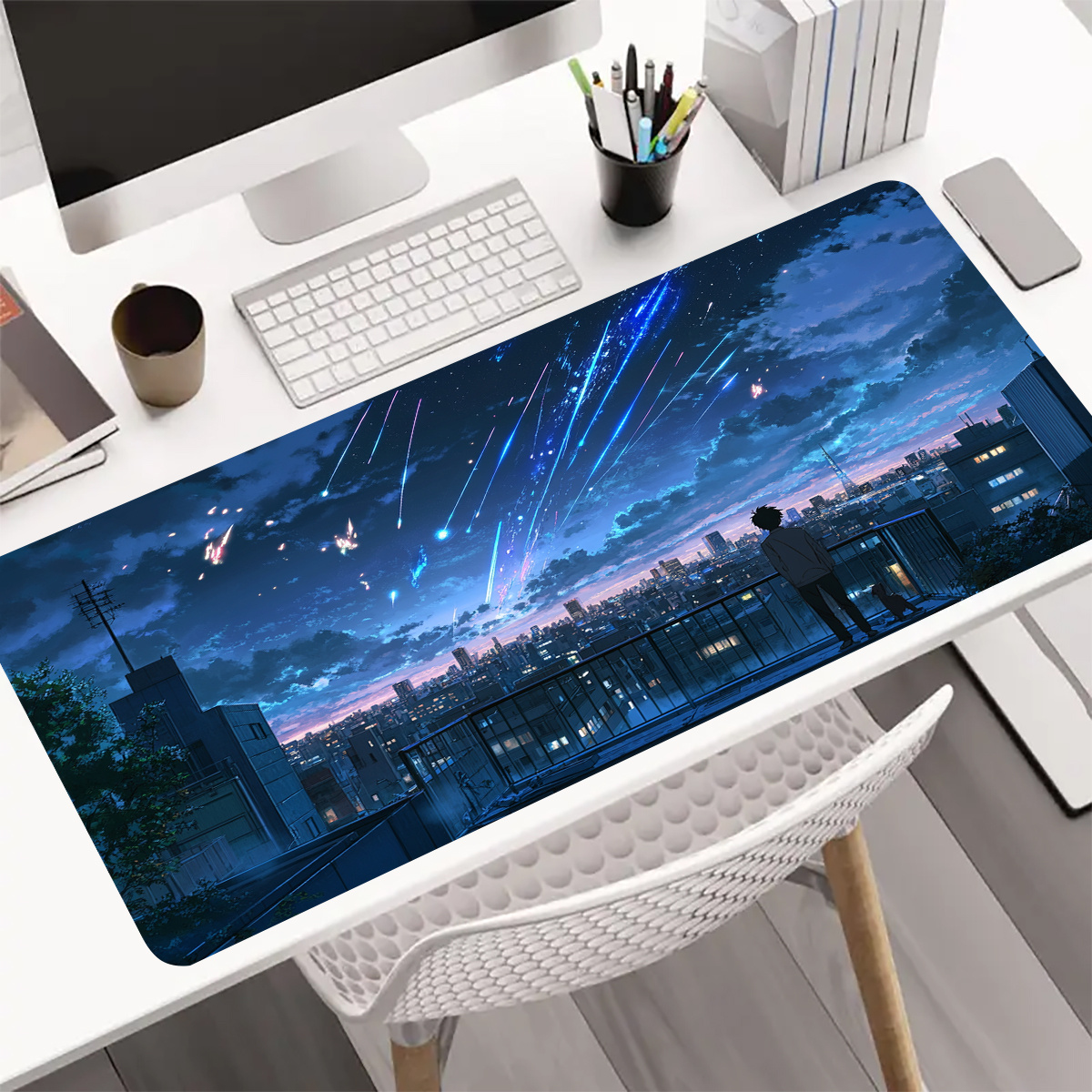 TEMU 꿈의 유성 도시 풍경 마우스 패드 - 확장형 대형 미끄럼 방지 워터프루프 세탁 가능 데스크 매트, 사무실 게임 및 공부용 아티스틱 밤하늘 디자인, 내구성 있는 쉬운 청소 컴퓨터 액세서리 선물, 대형 데스크용 마우스 패드
